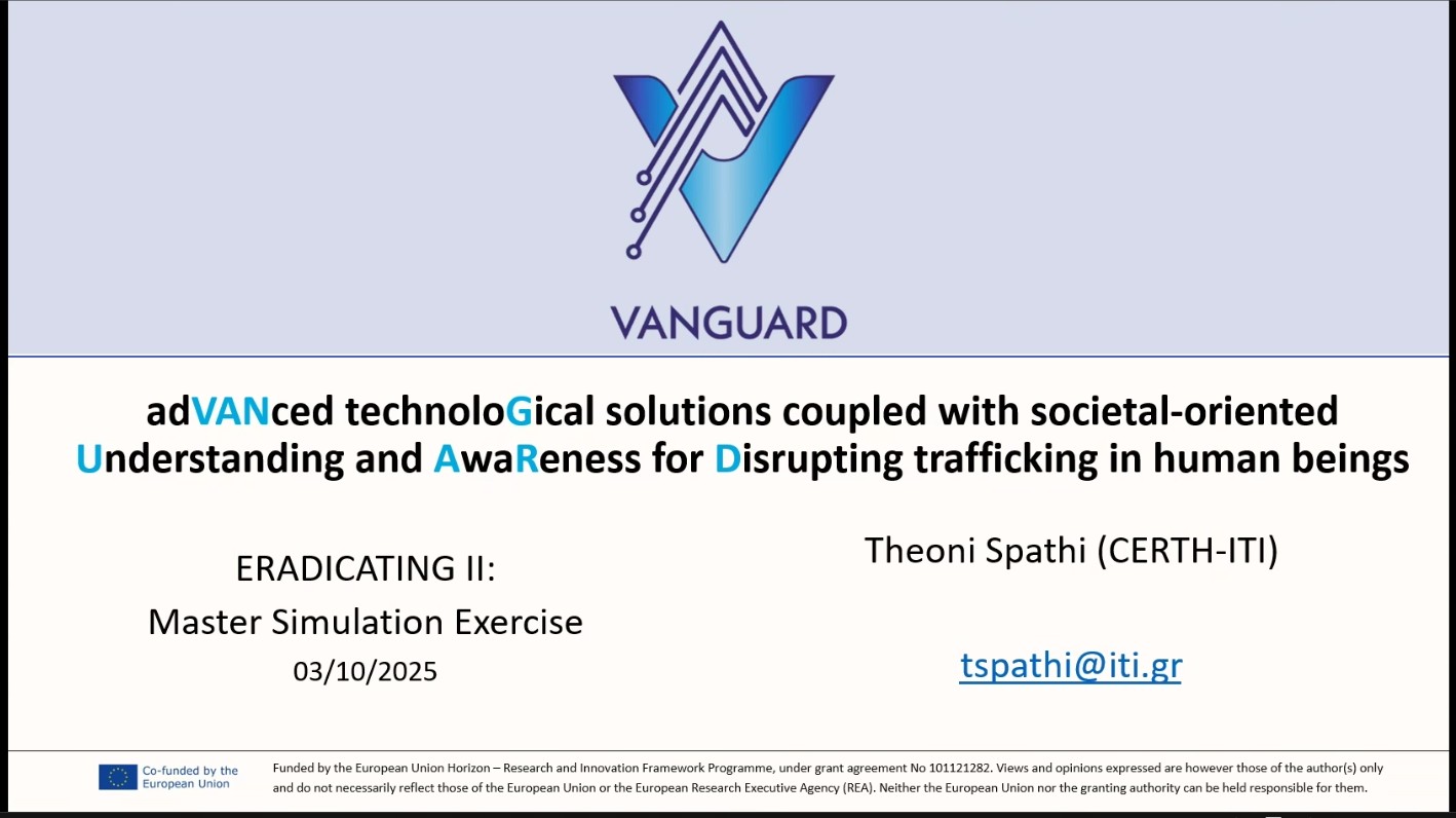 Events Upcoming Events VANGUARD Webinar- 22 October 2025 Read More Past Events ERADICATING II Simulation Exercise Press Release Read More VANGUARD participation at OSCE Webinar Read More VANGUARD meeting with the Organization for Security and Co-operation in Europe Read More VANGUARD participation to EUROCRIM 2025 – Press Release Read More ERADICATING II Workshop Press Release Read More First VANGUARD Workshop – Press Release Read More ALUNA Final Conference Read More ASIT Simulation Exercise Read More First VANGUARD Workshop – 17 June 2025 Read More CEPOL Research and Science Conference Read More Load More